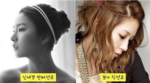 반버선코와 직선코를 가진 여자 연예인들 사진으로