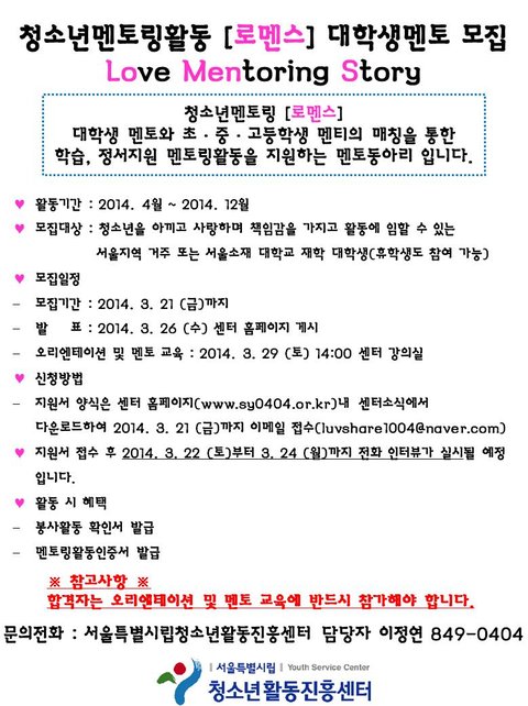 청소년멘토링활동 대학생 멘토 모집하고 있습니다!