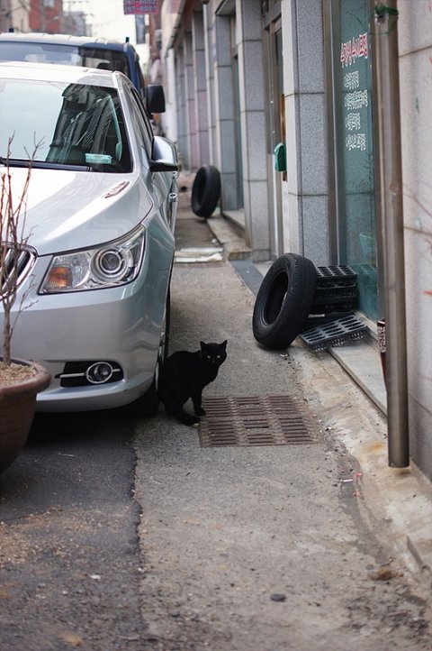 검은색 고양이도 만났어요.