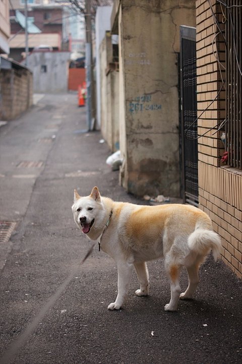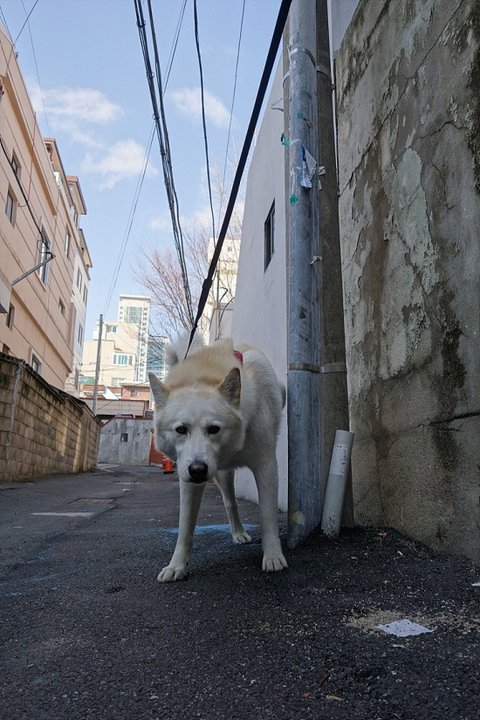 주인에게 버려져 홀로 남겨진 해피를 안타깝게 보시던 할머니께서 2년 정도 족발이나 먹다남음 음식을 가져다 주셨다고 해요...