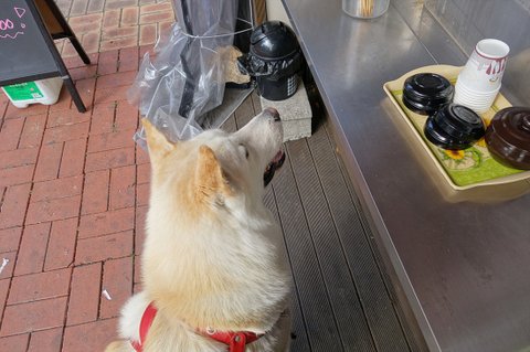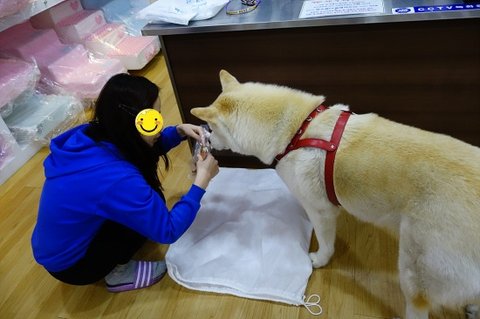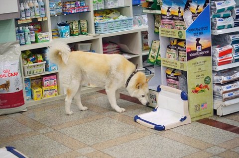 애완용품점 와서 간식 얻어먹는 심바.ㅎㅎ