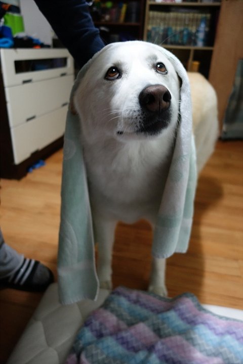 수건으로 몸을 닦이면 너무 좋아하는 심바
