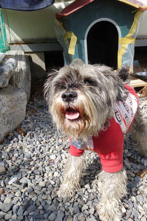 노숙을 하던 해피를 잡아..온몸에 엉겨붙어 뭉쳐버린 털 뭉치들을 할머니께서 잘라주셨데요..