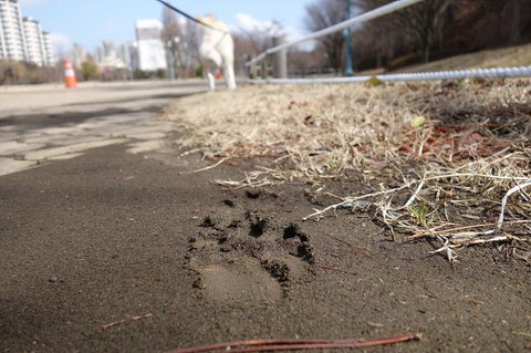 흙에 찍힌 심바 발자국