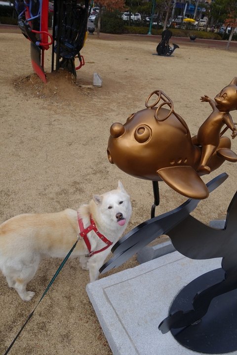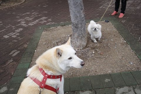 해피 동생 땡칠이가 오고 있어요.