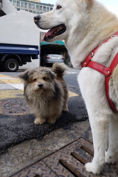ㅋㅋㅋ 옆에 걸어오시는 아저씨께 친한척 하면서 걸어오고 있는 심바