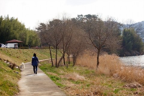강변을 산책중