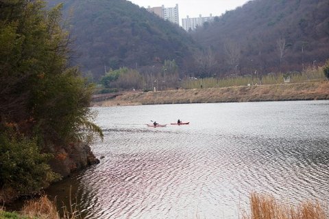 카약을 보고 오리인가? 하면서 집중하고 있어요