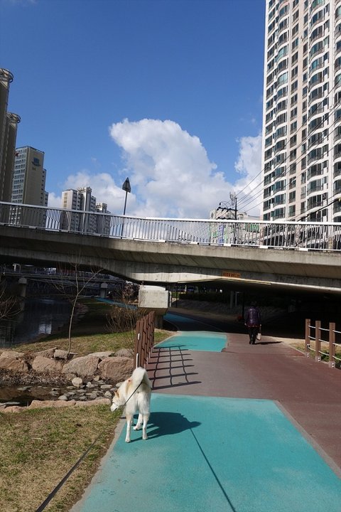 하천을 따라 산책로랑 자전거 도로가 잘 되어있어요.