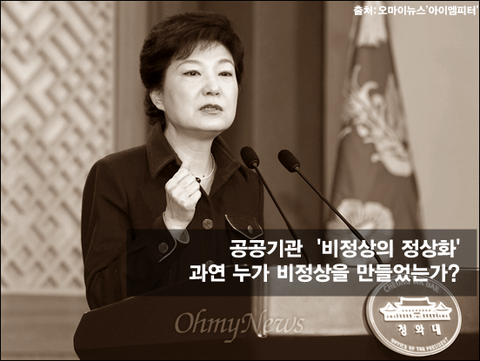 그러나 박근혜 대통령의 공공기관 개혁은 사실 문제점이 누구한테 시작됐는지는 쏙 빼놓은 채, 말로만 개혁하겠다는 소리에 불과합니다.