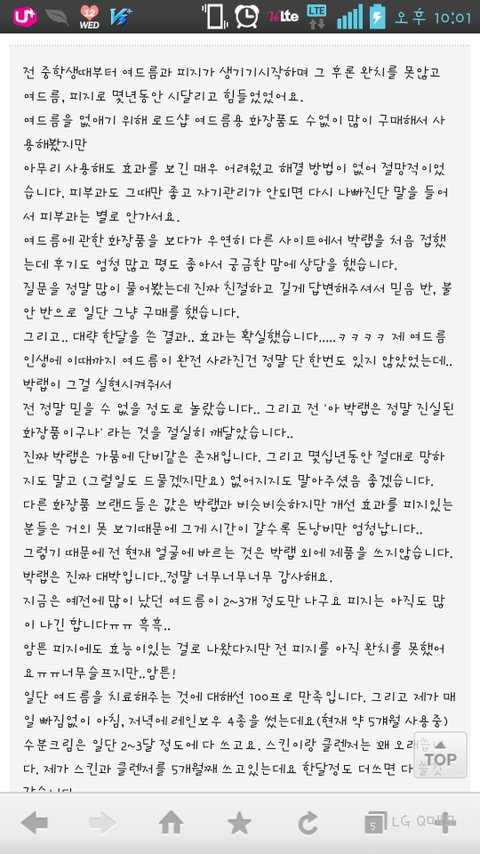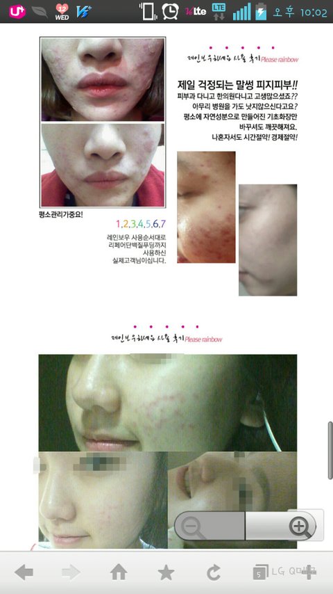 고3때부터 여드름이나기시작해 피부과며 한의원이며 돈몇백씩.쏟아부어도 몇년동안낫질않던 여드름이 박랩레인보우를 사용한지 일주일도안되서 엄청난효과를 보고 저혼자만알고있기엔 여태까지 저두여드름 뾰루지 좁쌀때매 너무고생한 그맘 너무속상햇어서 몇자적고갈게요!!!!