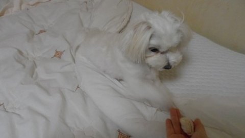 흥분하지 말고 천천히 먹으라고 줬더니 얌전하게 앉아서 격렬하게 뜯어먹는 행복이!