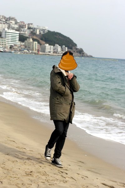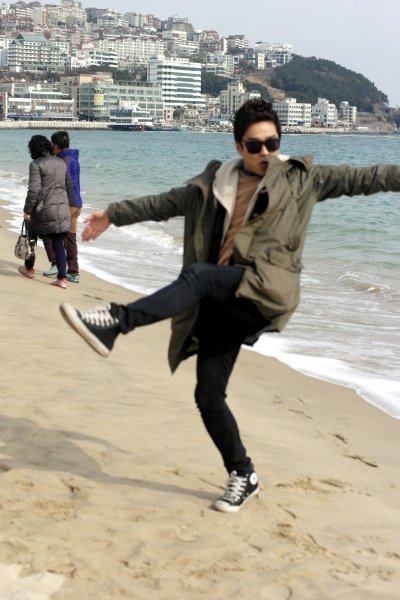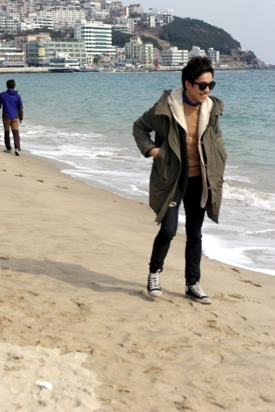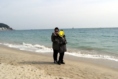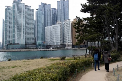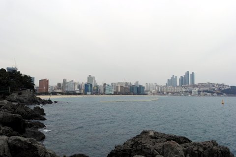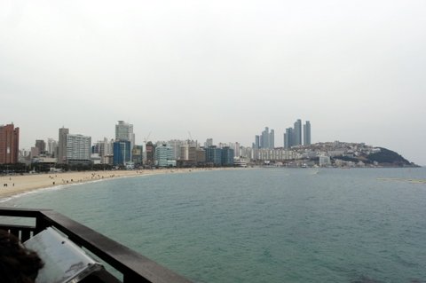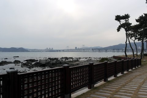 저는 해운대를 가로질러가면서 눈으로 경치를 구경하면서 걸어가는 루트를 택했습니다.