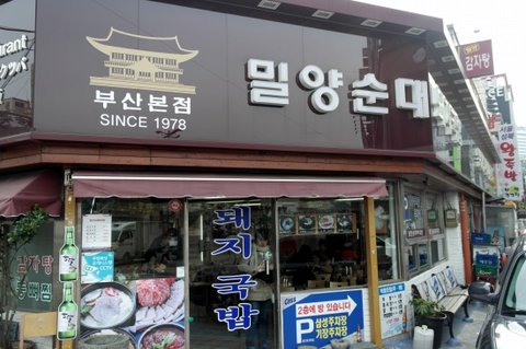 해운대 바다와 해운대역 사이에이 있는 밀양 순대 돼지국밥