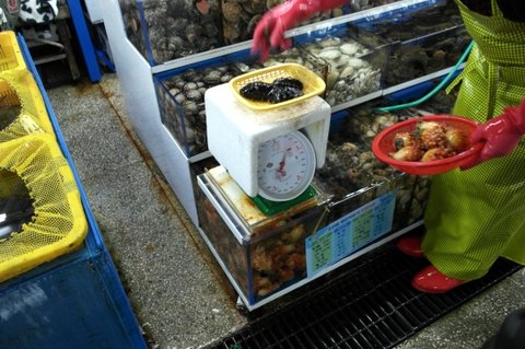 해산물은 멍게 해삼으로 1만원 어치 구입했습니다. 총 4만원!!