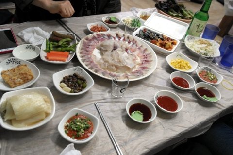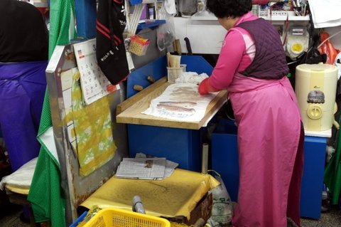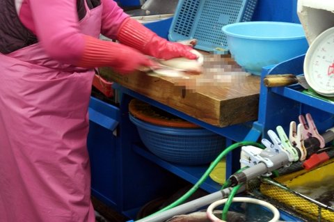 여기 이모님이 생활의달인... 손이안보이십니다;; 쇽쇽숙슉슉슉 하면 멍게살이 슈루룩...