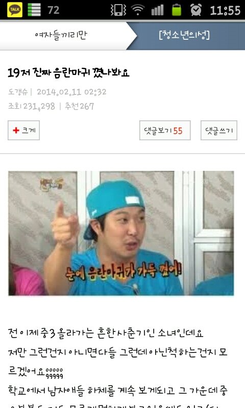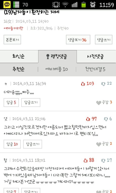 드디어 ㅇ님 여자분들의 엄청난 지지로 베플 되셨는데