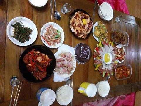 이 상을 혼자 차렸다는게 두눈으로 보고서도 믿기지가 않아 신랑과 저는 "오메~ 오메~"