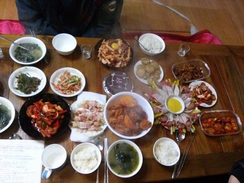 재료손질도 하루전날 미리해놓고 꽁꽁숨겨두었다가 이렇게 여섯시간에 걸쳐 혼자 다 한거였어요.