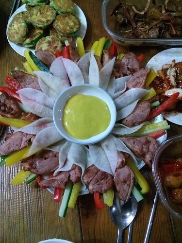 애호박전, 오리훈제무쌈말이 (너무 예쁘죠?)