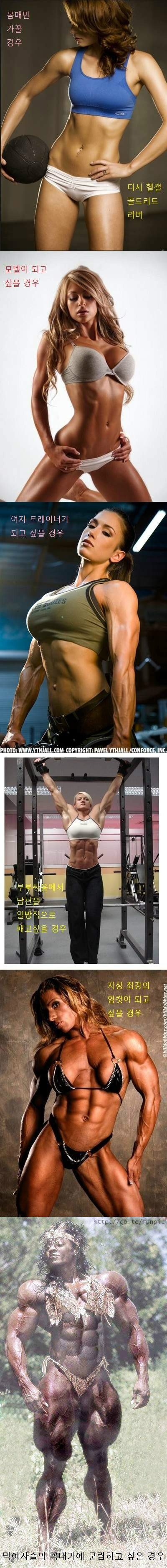 근데 진짜 여자몸으로 저렇게 근육을 발달시키는게 가능해요? 마지막사진같은경우는 약을쓰지않는이상.. 대단하다.. 난 차라리 먹이가되겠어