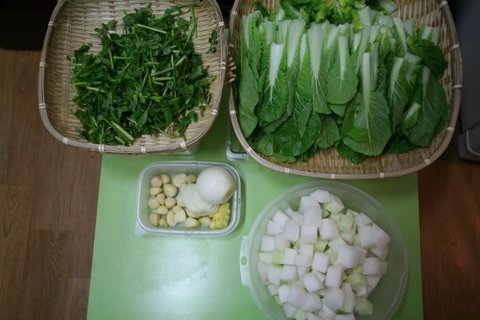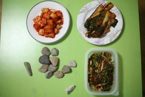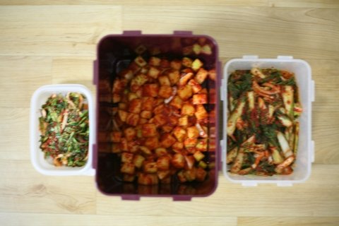 얼갈이김치 , 깍두기 , 미나리 김치 담궈본거에요 >.<