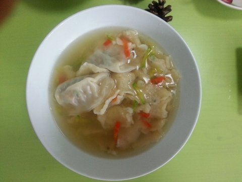 직접 빚은 수제비에 만두넣고..