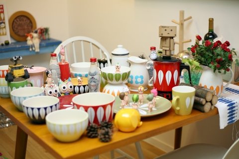 그동안 하나하나 시트지로 리폼한 그릇들..한자리에 모아봤어영 +.+