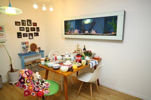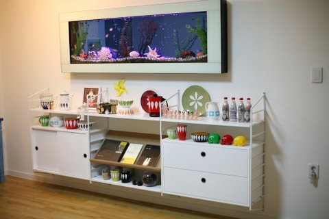 거실엔 벽걸이수족관 (살아있는 열대어) 그밑엔 홀름 선반 설치~~