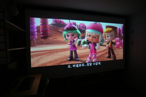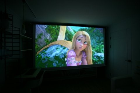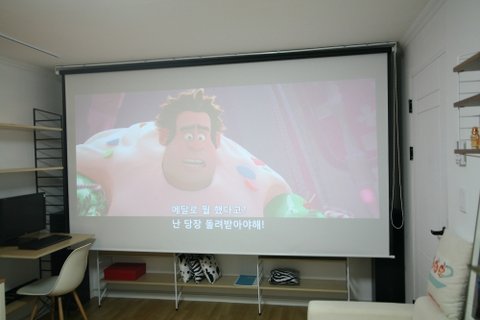 150인치 스크린을 내리면 책장은 사라집니당 ㅎ