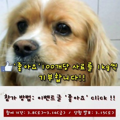 페이스북을 돌아다니다 좋은 이벤트를 열고 있어 이렇게 동물 사랑하는 사람들끼리 공유하고 싶어 글을 작성해봅니다! ㅠㅠ