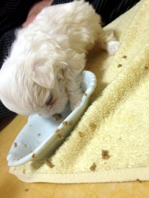 그래서 사람손에 키워지고잇는 이제 막 생후 1달을 넘기고있는 예픈 말티즈 꼬물양 입니다!