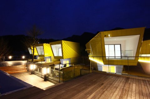 대지 면과 접한 여섯 노랑 덩어리의 하단 부위는 최소한의 서비스 기능만을 덜어내고,