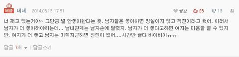 오늘 남/여 톡에 올라온 베플임.