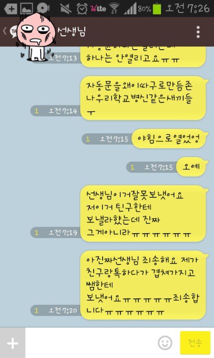 그래서 선생님께 보내야겠다 싶어서 보냈다가 친구들한테 다시욕을보내고