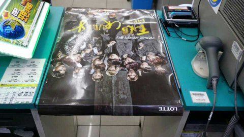 어제 저희편의점 계산대에 점장님께서 엑소포스터를 붙여놓으셨더라구요 ㅋㅋㅋ