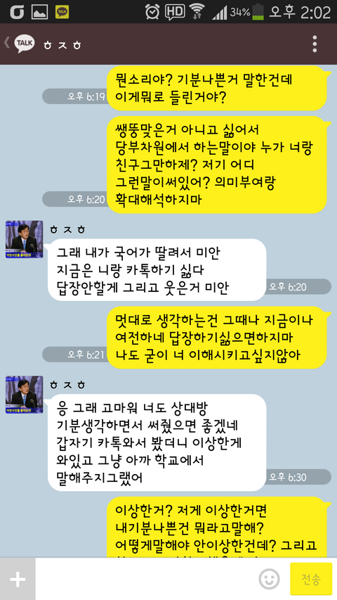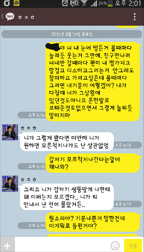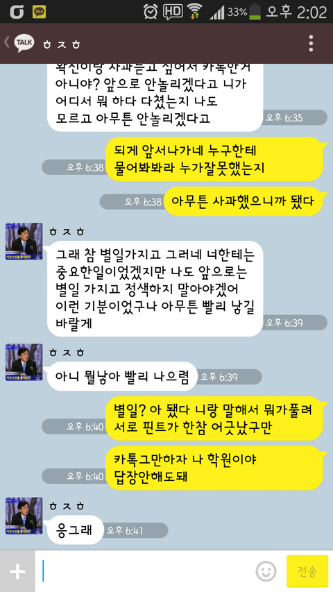 그래서 어제 놀리지말라고 톡을 보냈더니 ㅋㅋㅋㅋ