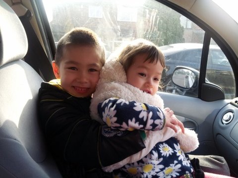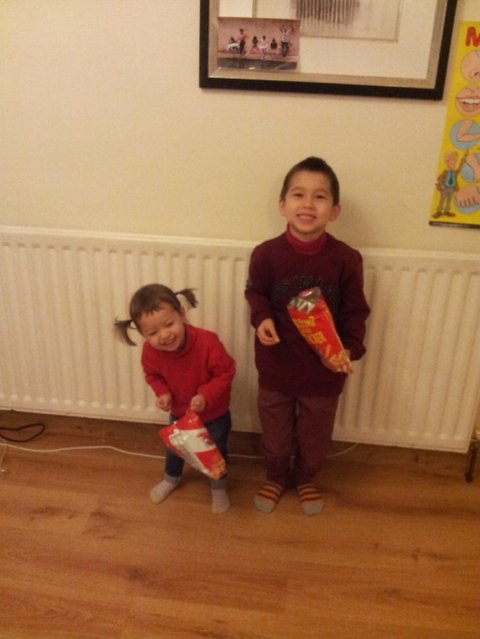 한인슈퍼 다녀온 기념으로 새우깡 하나씩 들고서 저래 좋아하네요.