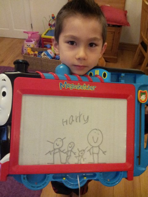 마지막은 우리아들이 그린 가족.....온가족이 다 합해도 머리카락 4개 ..... ㅜㅜㅜㅜㅜㅜㅜ
