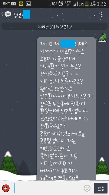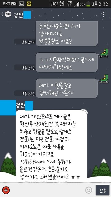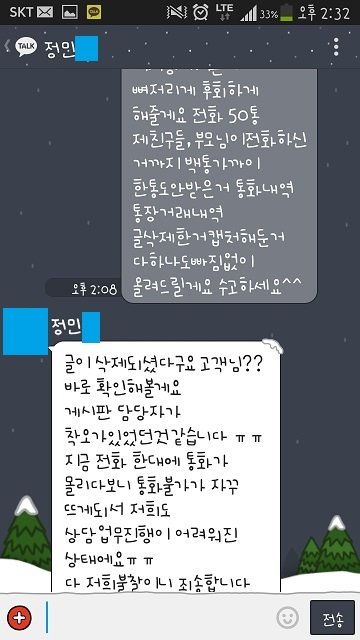 그러고 저는 핸드폰밧데리가 나가 연락을 못했는데 집에와서 충전후 봤더니 제 카톡도