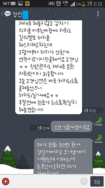 그리고 어제 14일 저는 X밍피플 대표자 분 핸드폰으로 전화하고