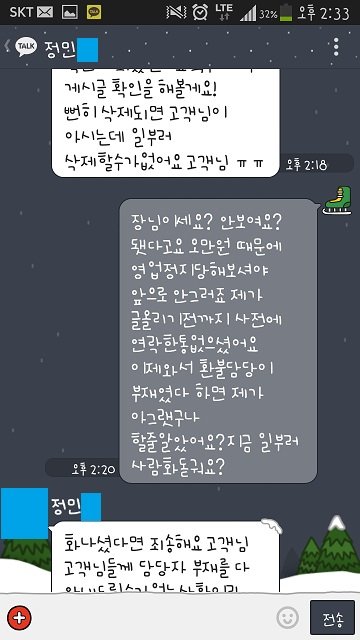 이런데 올리겠다고 했더니 사태의 심각성을 느꼇는지 그제서야 죄송하다고