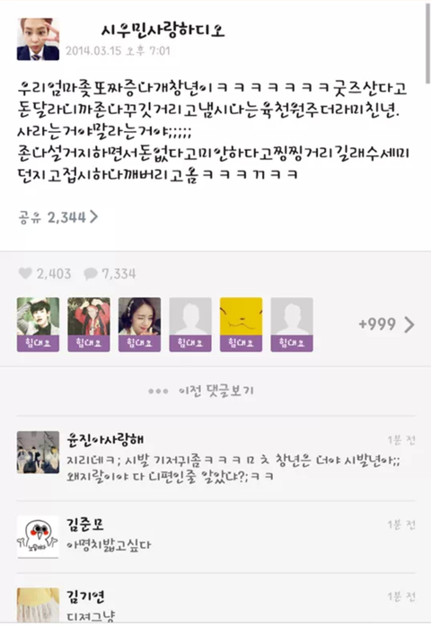 얼굴책보다가 퍼움 아주어마어마하게 개같은년을 봄