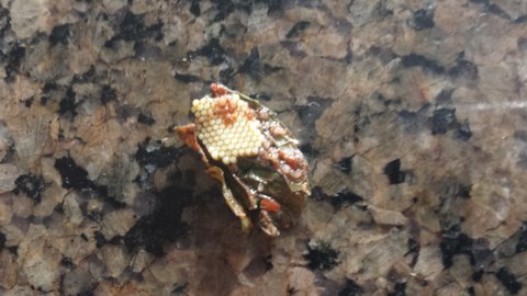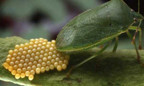 줄을 야무지게 서있는 알들이...반쯤 쪼개진 잎에..