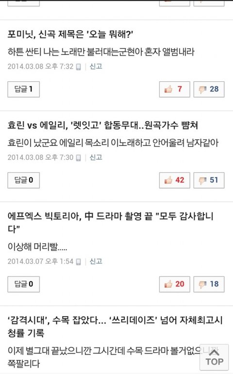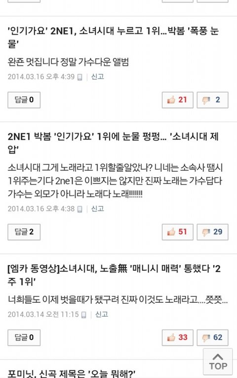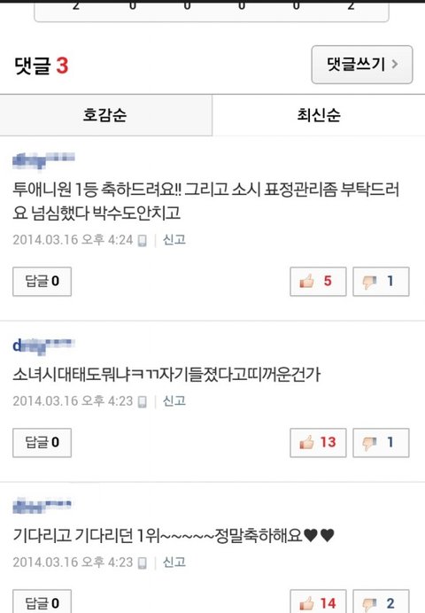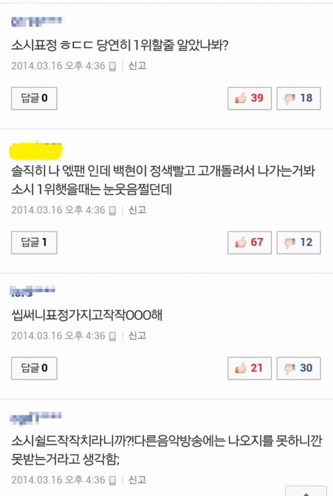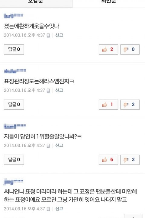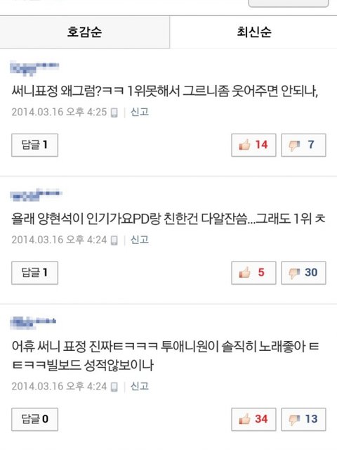 뭐 반대로 소녀시대가 일위하고 투에니원이 일위못했어 근데 표정안좋았어 그럼 깔꺼냐