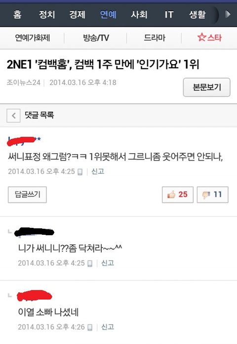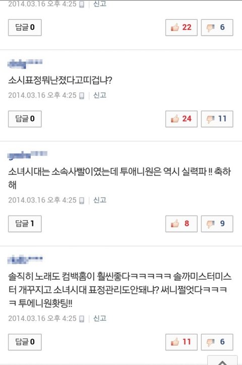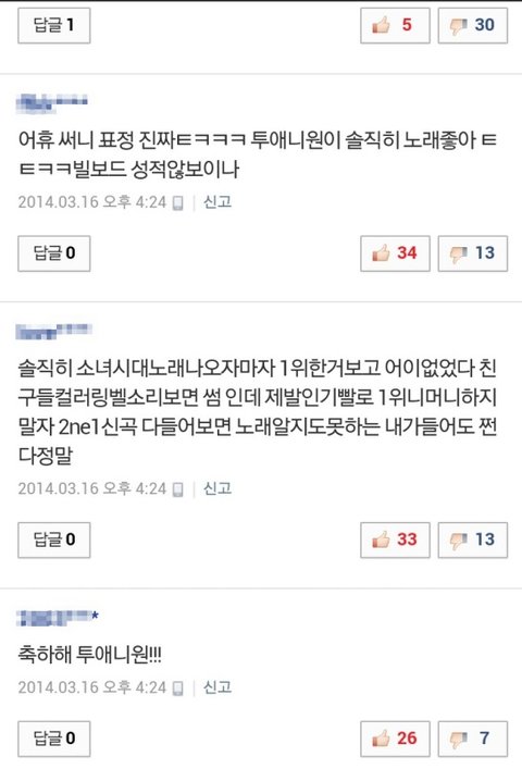 거의 투에니원 팬이라는거 단정지을수없음 근데 네이버 댓글모음봐라 몇몇은 투에니원 찬양하다못해 다른 그룹조카 까내리네;; 무서워죽겠어;;