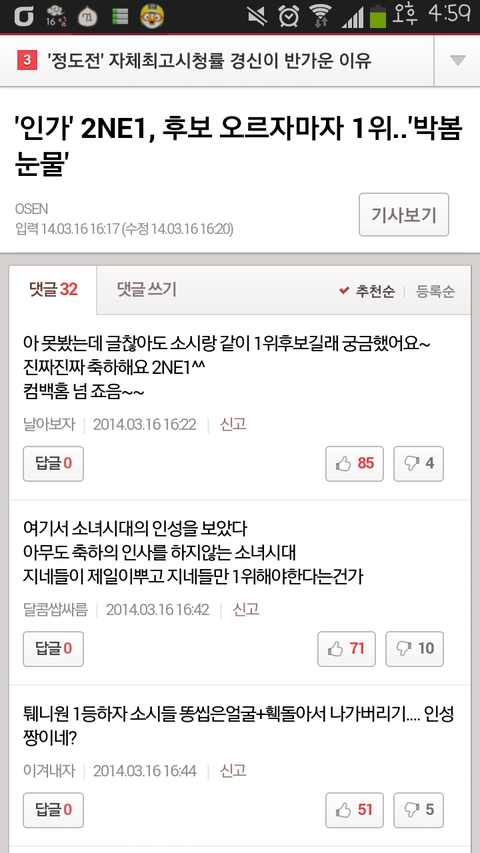 쌩들어가더라 개싸가지년들 어떻게 지들인기가평생갈거라고생각하고 저리깝싸냐 지들인기가 예전부터내리막인걸모름 빠돌이사이에파묻혀잇다보니 그게대중반응이겟거니해서