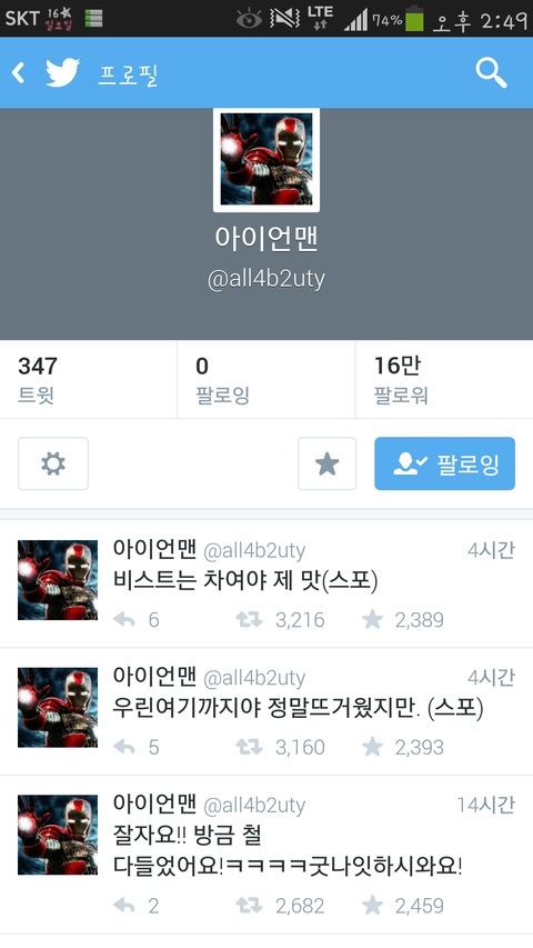 올리고나서 비스티움하고 다 난리낫던데 아무도 아이언맨으로 바뀐건 추리 안하더라구요ㅠㅠ..