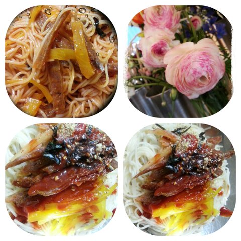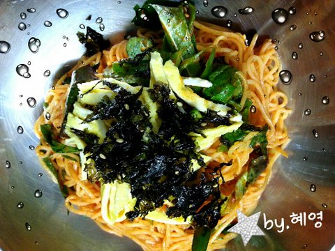 국수로 집에서 간단하게 비빔국수를 만들어 봤습니다.