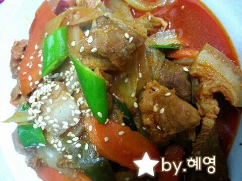 쫄깃하고 맛있는 돼지고기 양념 볶음 완성~